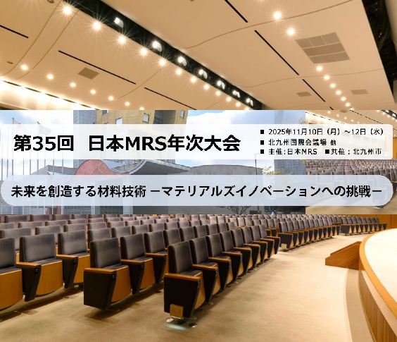 2025/11/10 Kato gave an invited talk titled “Structural Control and Synthesis of Innovative One- and Two-Dimensional Nanomaterials Using Plasma Nanoengineering” at the 35th Annual Meeting of the Materials Research Society of Japan, held at the Kitakyushu International Conference Center, Fukuoka, Japan.